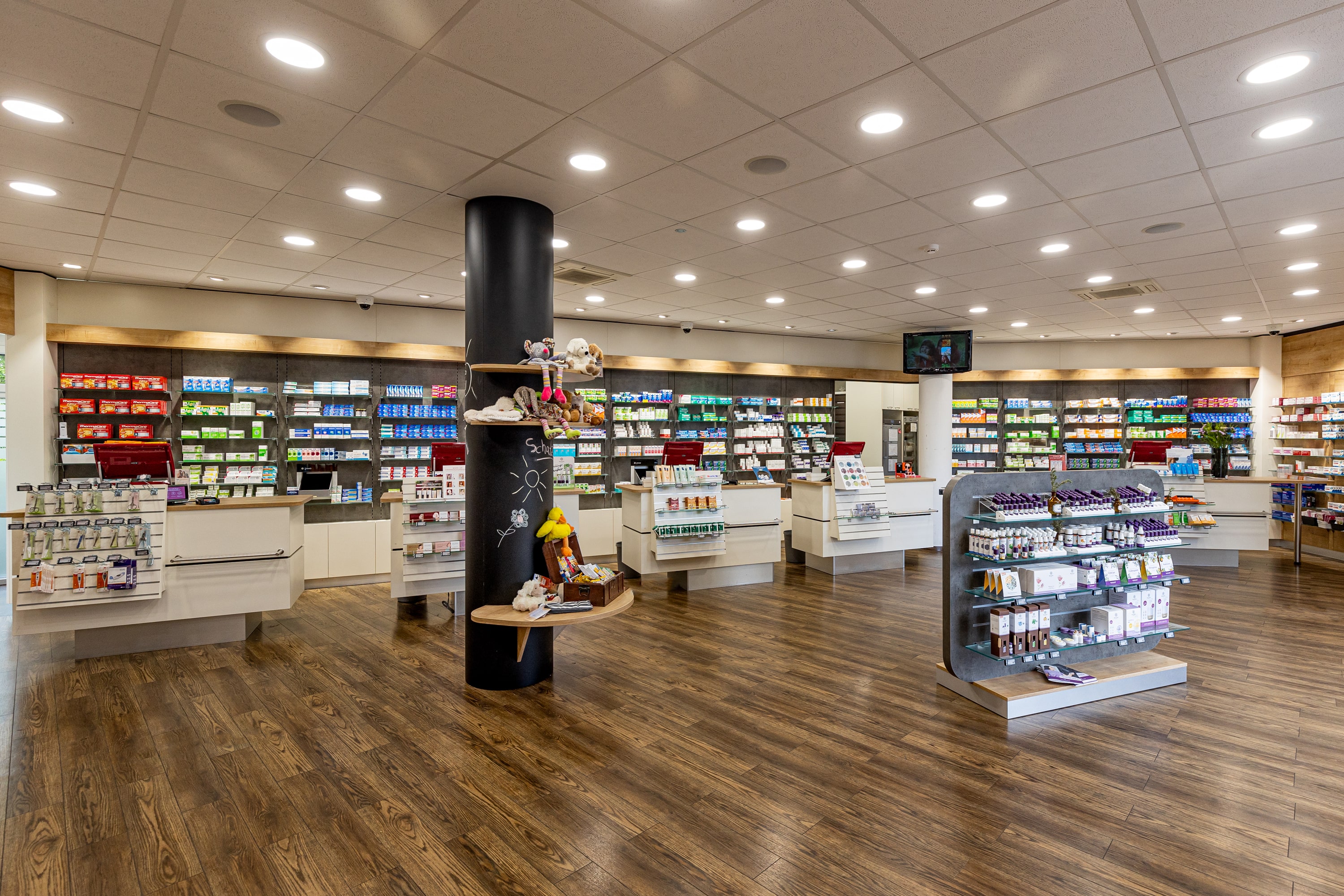 Die Produkte der Apotheke am Dombogen reichen von klassischen Arznei- und Hilfsmitteln über naturzertifizierte Kosmetik, Produkte der integrativen Therapie bis hin zu Reise- und Kompressionsstrümpfen.